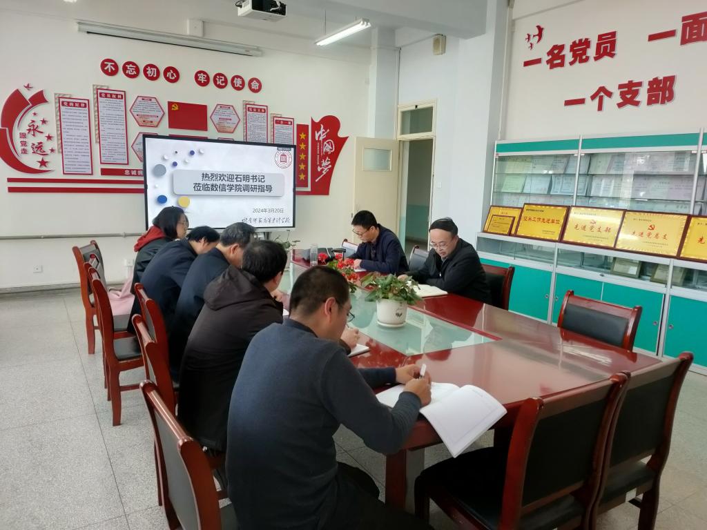 3月20日下午,党委副书记石明到太阳成集团tyc122cc就公司就业工作、教学工作等进行调研,教务处崔俊峰副处长陪同调研。