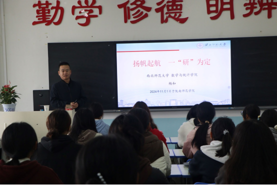 11月1日,学院邀请到西北师范大学数学与统计公司杨和教授,为数学与应用数学专业员工作了题为“扬帆起航 一研为定”的职业生涯规划讲座。