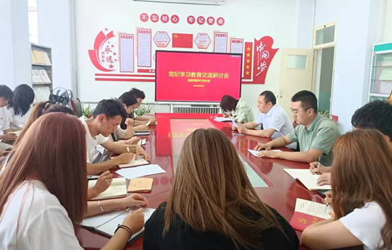 5月30日下午16:30 太阳成集团tyc122cc员工党支部在党员活动室613开展党纪学习交流会。支部正式党员和预备党员参加了交流会。