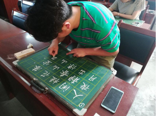 此次粉笔字项目比赛,采用现场小黑板书写的形式进行,板书内容统一,选自中华经典诗词歌赋等文学作品,板书时间在十分钟内。在比赛中,同学们集中精神专心于自己的作品创作,体现出精益求精的素养。